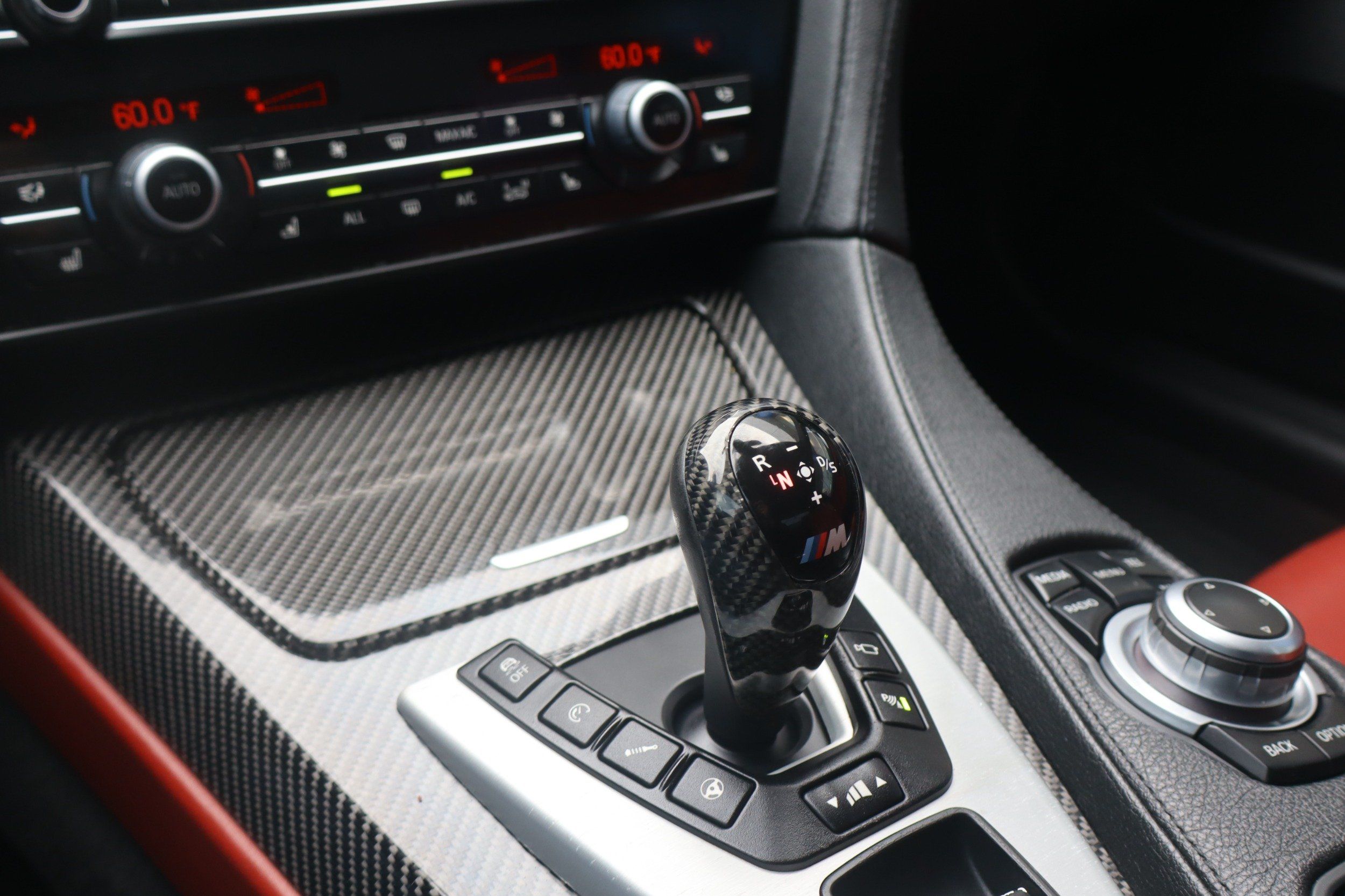 Console insert material: Leather and carbon fiber console insert