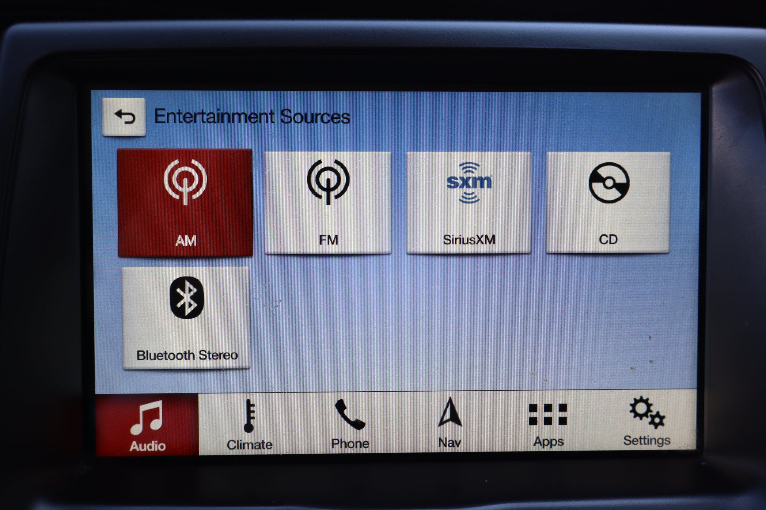 Radio: AM/FM, touch screen display, voice operated